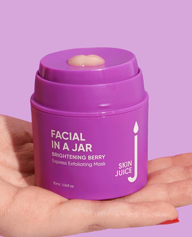 BRIGHTENING BERRY is a facial treat bursting with exfoliating berry fruit acids and juicy nutrients to help brighten, boost and hydrate the skin. Just like an express facial, in a jar.