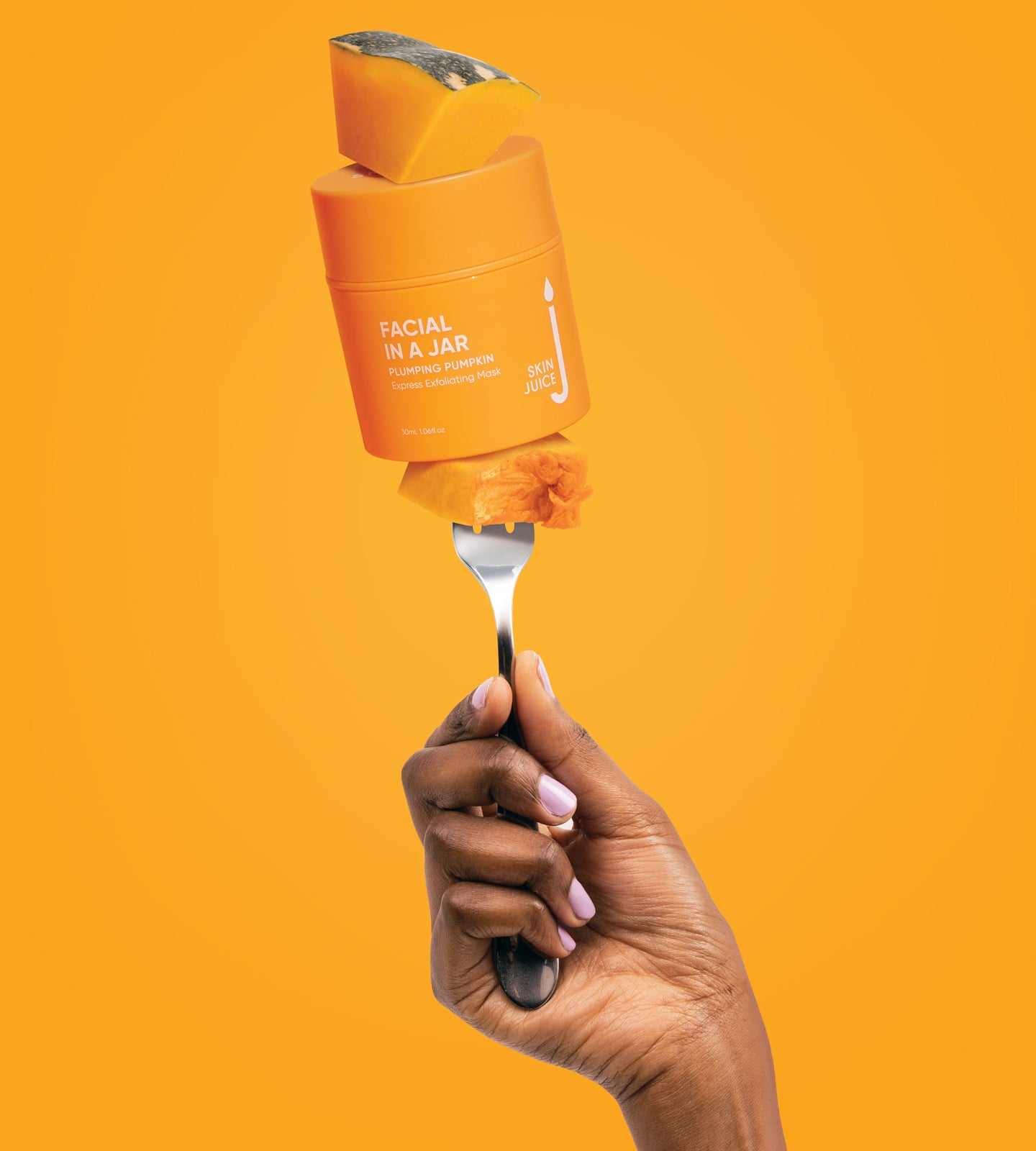 PLUMPING PUMPKIN is a facial treat bursting with exfoliating pumpkin enzymes, fruit acids and juicy nutrients to help unveil fresh, dewy and youthful skin. Just like an express facial, in a jar.