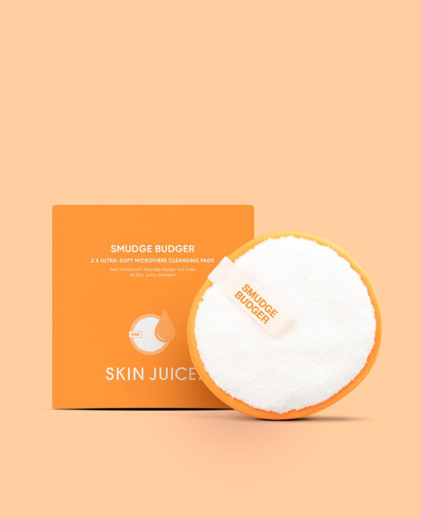 Apply your Skin Juice cleanser to a dry face with dry hands. Add water and emulsify the cleanser to help lift dirt and impurities. Wet the Smudge Budger and gently wipe over the face to remove any remaining residue or make-up. Rinse your Smudge Budger and hang to dry.